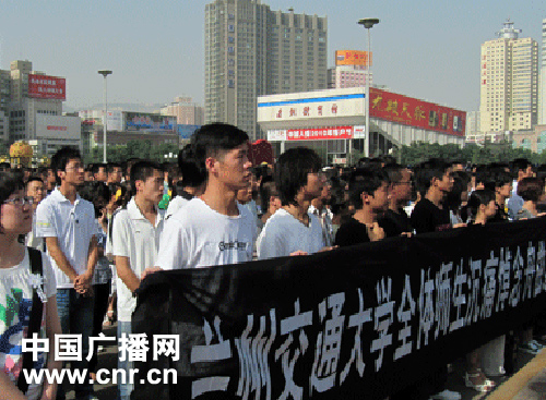 甘肅蘭州東方紅廣場(chǎng)萬(wàn)人參加哀悼活動(dòng)(中廣網(wǎng)記者 焦。
