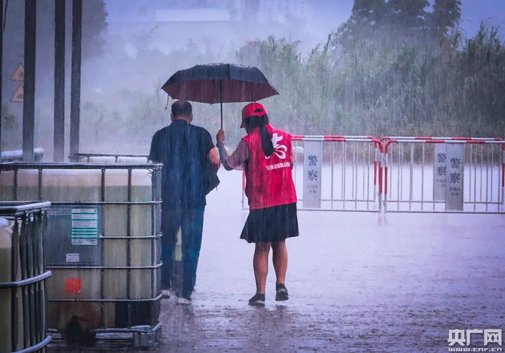 志愿者雨中為老人撐傘的照片引來(lái)全城熱議。(央廣網(wǎng)發(fā) 通訊員供圖)