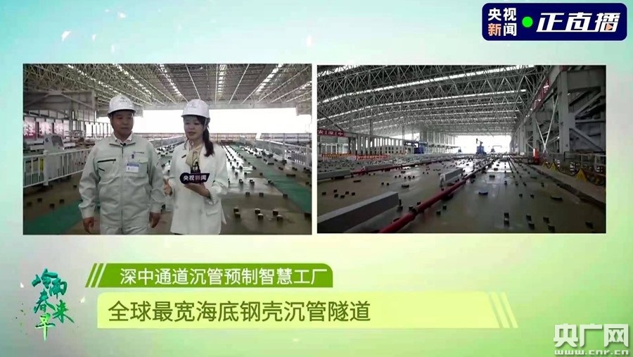 總臺記者走進(jìn)深中通道沉管預制智慧工廠(chǎng)。
