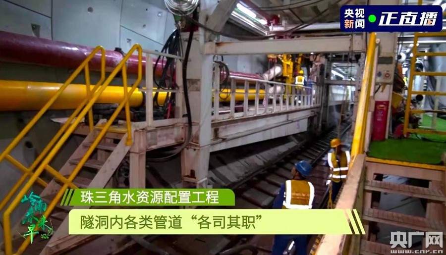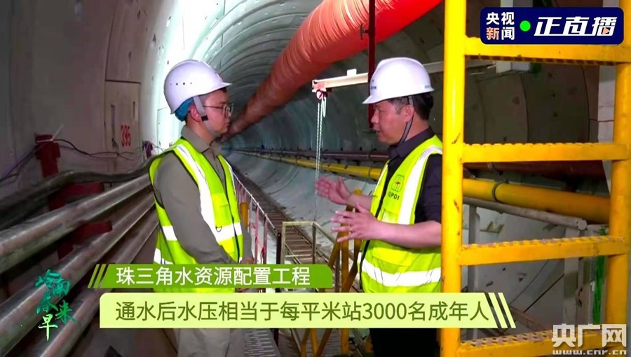 在節目中,總臺記者帶領(lǐng)觀(guān)眾去往地下60米,實(shí)地探訪(fǎng)了施工難度頂級的珠三角水資源配置。