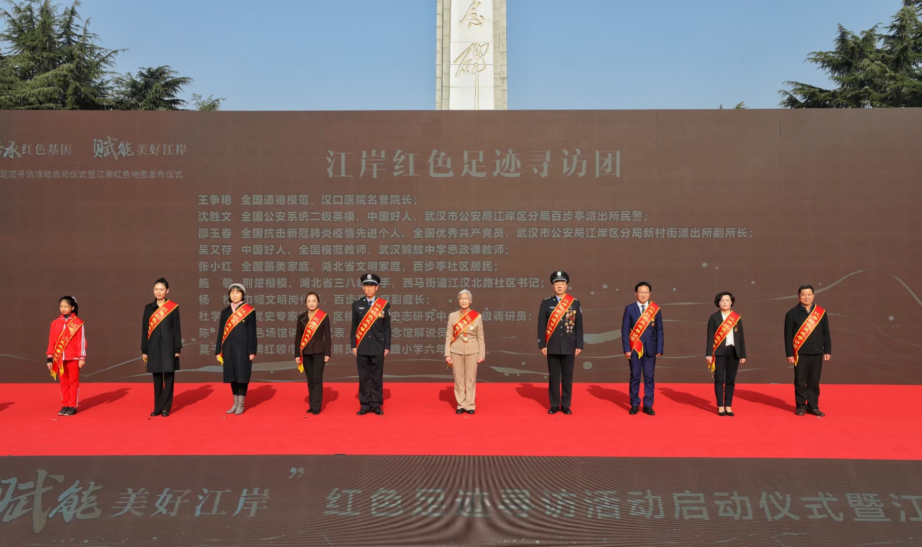 據了解,“江岸紅色足跡尋訪(fǎng)團”成員由全國道德模范、中國好人等先進(jìn)典型和各行各業(yè)代表組成,他們將作為“紅色江岸代言人”,展開(kāi)各類(lèi)“紅色足跡”尋訪(fǎng)活動(dòng),傳承紅色基因,傳播紅色文化。
