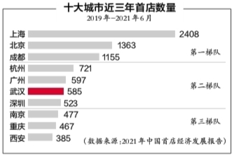 《報告》顯示,自2019年1月到2021年6月,武漢引進(jìn)和培育的首店達585家,位列全國第六,穩居首店經(jīng)濟“第二梯隊”。特別是今年上半年,武漢首店經(jīng)濟發(fā)展迅猛,新開(kāi)首店195家,排名全國第五,趕超勢頭正勁。 隨著(zhù)資本市場(chǎng)入局新消費領(lǐng)域,線(xiàn)下拓店速度正在加快。如今,上海、北京、深圳、武漢、成都等是“新消費”品牌制造地和老字號煥新培育地。 作為城市消費能級及商業(yè)活力的象征,城市間的首店爭奪戰將日趨激烈。