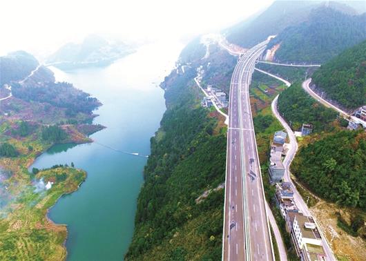 圖為:高速公路進(jìn)山來(lái)
