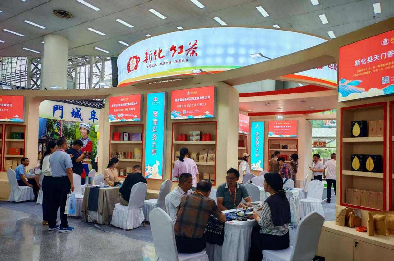 展會(huì )現場(chǎng),“新化紅茶”展位前人頭攢動(dòng),不少市民和采購商紛紛駐足品嘗、咨詢(xún)。此次22家新化茶企組團參展,集中展示新化紅茶、綠茶等特色茶葉產(chǎn)品。
