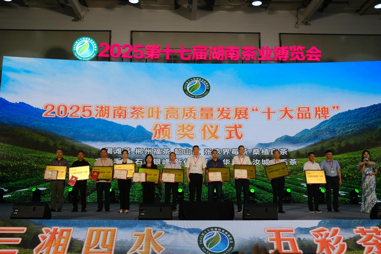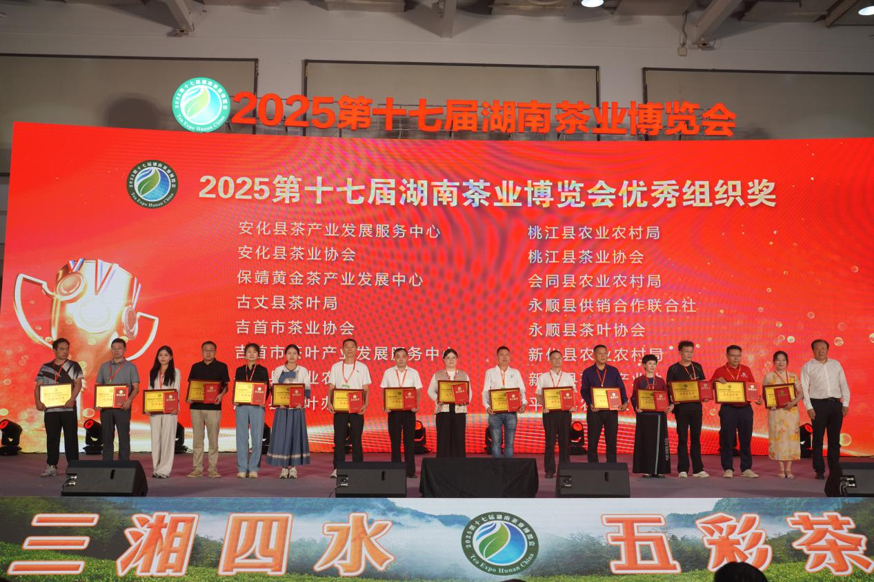 據了解,本屆茶博會(huì )為期四天,由湖南省茶業(yè)協(xié)會(huì )、湖南省茶葉學(xué)會(huì )等聯(lián)合主辦,以“三湘四水 五彩湘茶 鄉村振興 五彩茶香”為主題。會(huì )上,“新化紅茶”榮獲2025年湖南茶葉高質(zhì)量發(fā)展“十大品牌”,湖南省渠江薄片茶業(yè)股份有限公司獲2025年湖南茶葉高質(zhì)量發(fā)展“十佳科技領(lǐng)軍企業(yè)”,“紫鵲十八紅”獲“茶祖神農杯”紅茶類(lèi)五星茶產(chǎn)品,新化縣農業(yè)農村局、新化縣茶葉產(chǎn)業(yè)協(xié)會(huì )獲2025第十七屆湖南茶業(yè)博覽會(huì )優(yōu)秀組織獎。(曹慶華 曾振科)