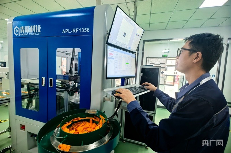 在位于青海省海南藏族自治州共和縣的青海青晴智能科技有限責任公司的智能數字化工廠(chǎng)內,全自動(dòng)生產(chǎn)設備正在生產(chǎn)畜牧產(chǎn)業(yè)智能數字耳標。