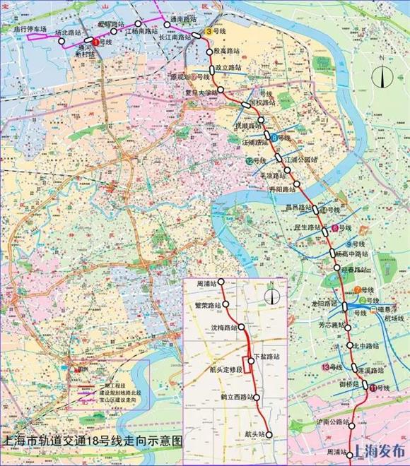 18號線(xiàn)一期工程自長(cháng)江南路站至航頭站,全長(cháng)36.8公里,車(chē)站26座。目前已開(kāi)工18座車(chē)站。