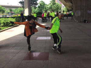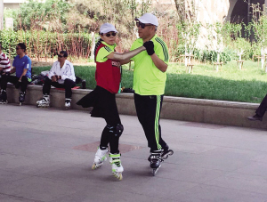 輪滑隊的李樹(shù)青告訴記者,他們在華爾茲原舞步的基礎上進(jìn)行了創(chuàng )新,增加了諸如“太空步”“單腳滑行”等幾個(gè)自創(chuàng )動(dòng)作。這些動(dòng)作對年輕人來(lái)說(shuō)并不難,可對于老年人來(lái)說(shuō)腿部、腰部的力量和身體的平衡尤為重要。輪滑華爾茲最難的就是轉圈和轉身兩個(gè)動(dòng)作,這要求每位舞者的輪滑技術(shù)過(guò)硬,舞伴之間的配合要默契,否則很難完成。