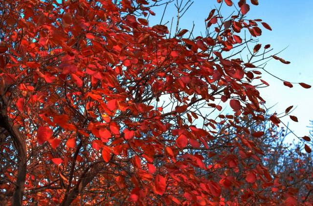 小檗,小檗科灌木,我國產(chǎn)200余種,許多種類(lèi)秋葉紅色,是優(yōu)良園林觀(guān)賞植物。(北方網(wǎng) 曲璐琳)