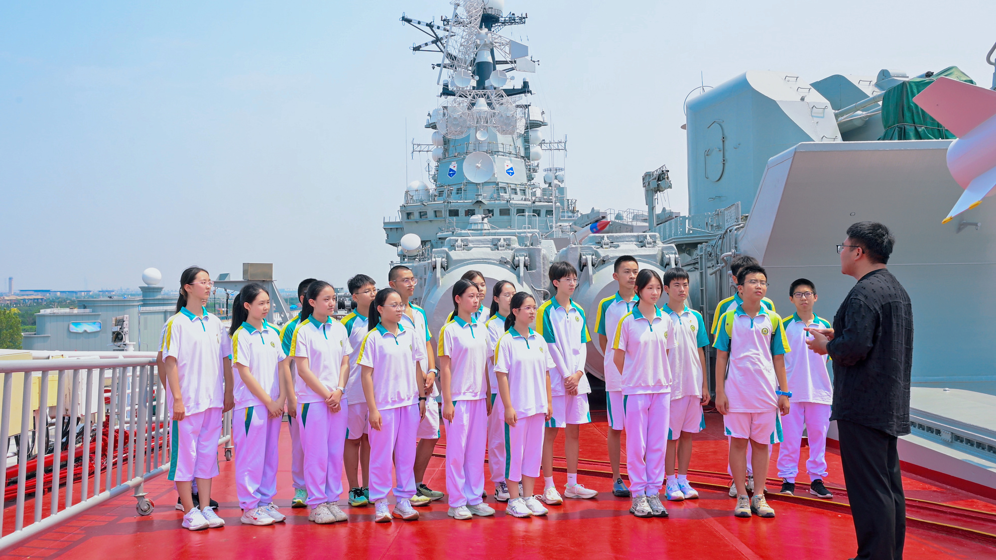 日前,天津師范大學(xué)馬克思主義學(xué)院聯(lián)合天津市實(shí)驗中學(xué)在天津泰達航母主題公園開(kāi)展“析史明理,解碼強軍路”行走的思政課。
