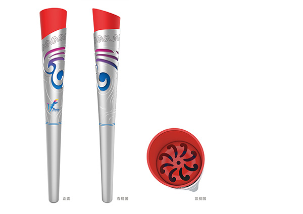 據第十三屆全運會(huì )視覺(jué)設計工作室負責人、天津美術(shù)學(xué)院教授郭振山介紹,本屆全運會(huì )火炬設計有以下兩個(gè)特點(diǎn):一是圖形元素內涵豐富,采用了浪花的圖案展示出了天津的地方特征,同時(shí),動(dòng)態(tài)的造型又蘊含了巨大的力量,展示出運動(dòng)的內涵,浪花與祥云的融合傳遞出了中國的概念,也傳遞出吉祥和諧盛會(huì )的內涵;二是綜合材料工藝彰顯出時(shí)代的特征,火炬采用銀白色鏤空工藝及藍紫色漸變色的處理,賦予了火炬極強的時(shí)代氣息與特征。