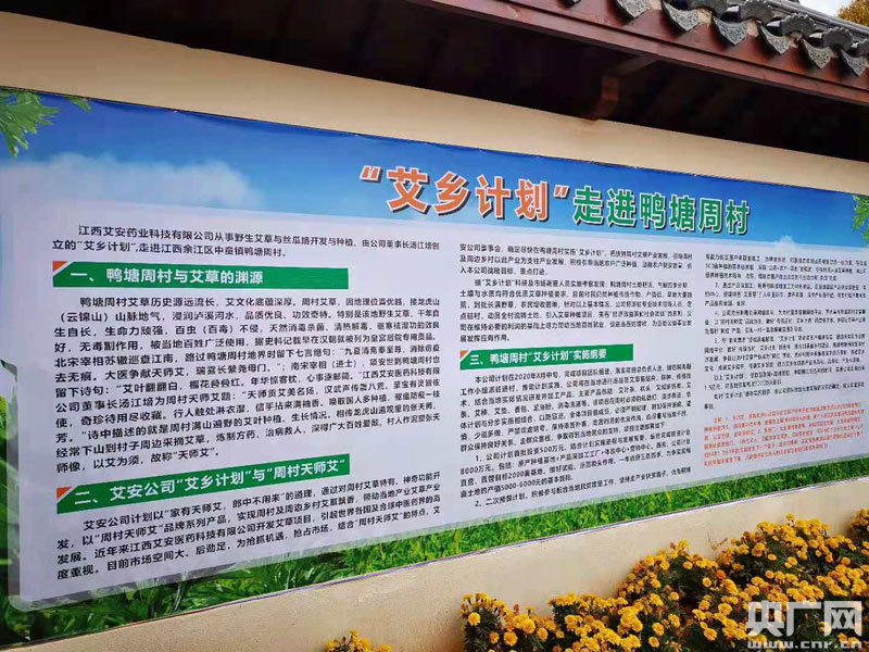 2020年10月,村里去湖北、福建等地實(shí)地考察和市場(chǎng)調研,引入優(yōu)質(zhì)艾草種植這一特色產(chǎn)業(yè),與江西艾安醫藥科技有限公司合作,注冊“周村天師艾”品牌,以公司+合作社+農戶(hù)的形式,創(chuàng )建鴨塘周村艾葉基地,為艾草種植戶(hù)提供技術(shù)、收購、加工、銷(xiāo)售“一條龍”服務(wù),實(shí)施優(yōu)質(zhì)艾草種植及深加工生產(chǎn)項目。