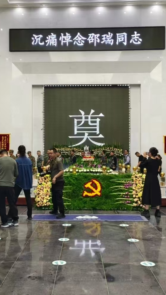 近日,邵瑞同志的追思會(huì )在其家鄉安徽省蚌埠市懷遠縣舉行,殯儀館門(mén)前路道兩旁站立了很多邵瑞生前親友,他們手持黑底白字橫幅,上面寫(xiě)著(zhù):迎接見(jiàn)義勇為英雄邵瑞同志回家。